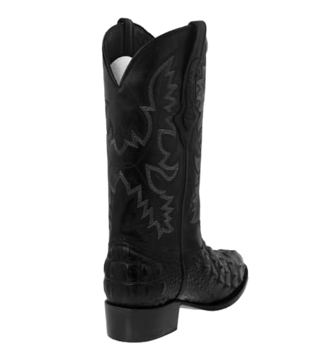 Specification: El Presidente Mens Western Cowboy Boots Black Leather Alligator Back Pattern Round Toe