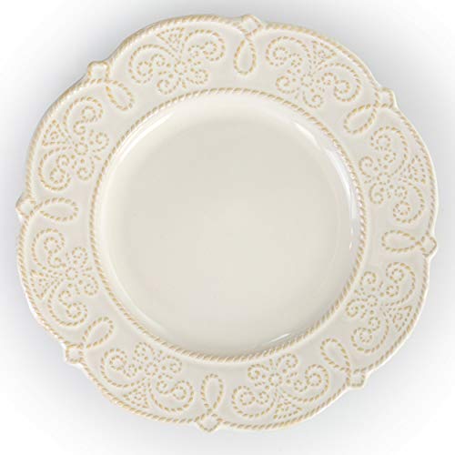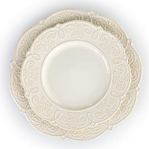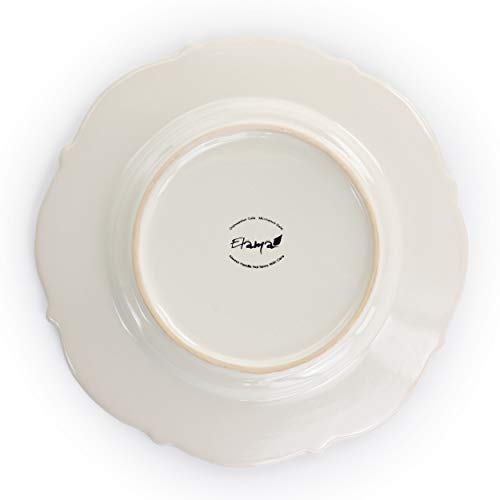 Specification: Elama Round Decorated Stoneware Scallop Embossed Dinnerware Dish Set, 16 Piece, Luna