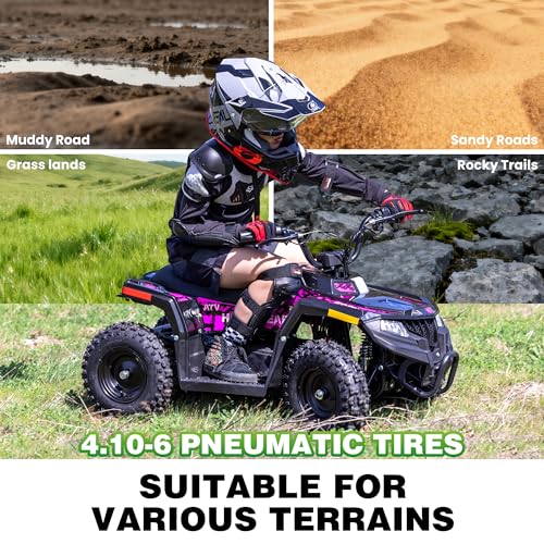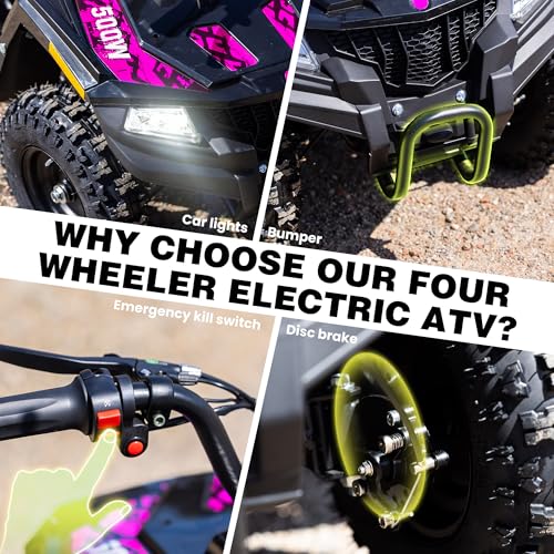 Specification: Electric ATV for Kids, 500W 36V Electric 4 Wheeler 12/15MPH Adjustable Speed, Electric Quad with Double Shock Absorption and Disc Brake,Capable of Bearing 143 lbs (Pink)