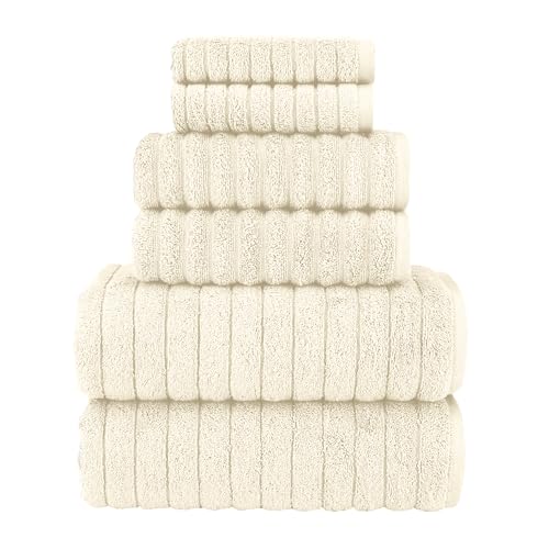Elegant Comfort 100% Turkish Cotton Corduroy Ribbed Luxury Bath Towels 6-Piece Set, Premium Feel – Quick Dry, Highly Absorbent, Contains 2 Bath Towels, 2 Hand Towels, and 2 Washcloths, Ivory
