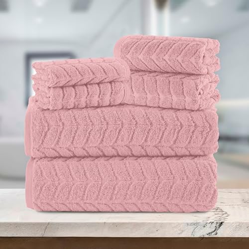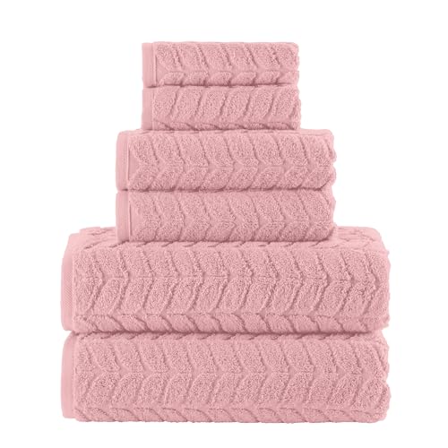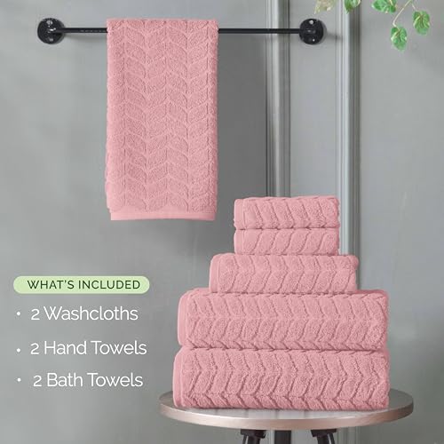 Elegant Comfort Luxury 6-Piece 100% Turkish Cotton Jacquard Braided Textured Premium Hotel Quality Towel Set– Soft and Absorbent, Includes 2 Bath Towels, 2 Hand Towels and 2 Washcloths, Dusty Rose