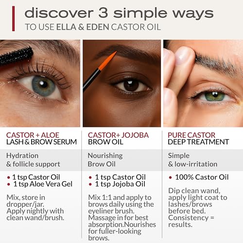 Specification: Ella & Eden Organic Castor Oil for Eyelashes – 4 Fl Oz Glass Bottle Lash Serum – for Eyebrows, for Hair Growth – Cold-Pressed Hexane-Free USDA Certified 100% Pure Unrefined