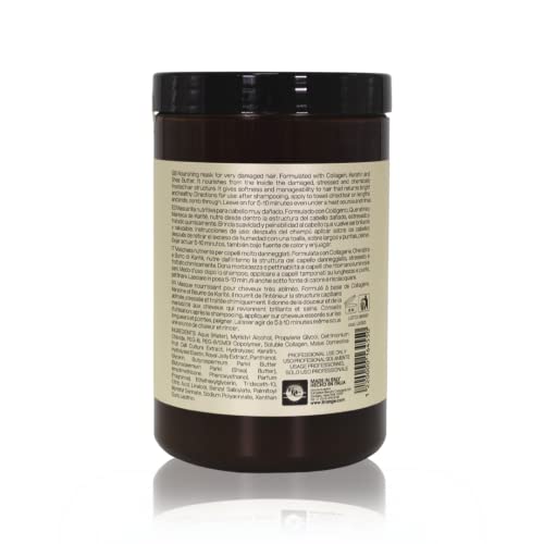 Formulated with collagen, keratin and shea butter, it deeply nourishes and repairs damaged, stressed and chemically treated hair from the inside out