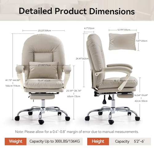 Safe and Premium PU Leather Office Chair: The office chair is BIFMA certified and equipped with a level 3 gas cylinder certified by SGS. This executive chair features a high-strength metal base and smooth-rolling casters, ensuring long-lasting durability for the big and tall office chair. The base can support up to 300 pounds, providing safety and reliability