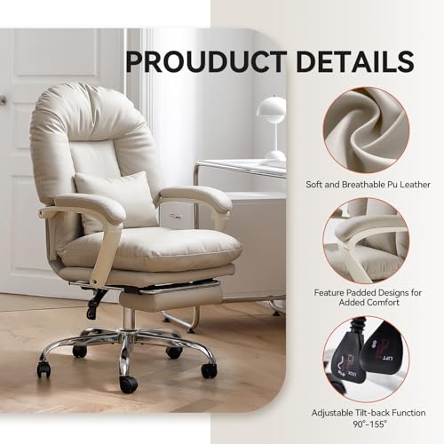 Specification: EMIAH Ergonomic Office Chair with Foot Rest Criss Cross Chair with Wheels Reclining Executive Office Chair Mid Back PU Leather Swivel Computer Chairs Lumbar Support for Home Office (Beige)