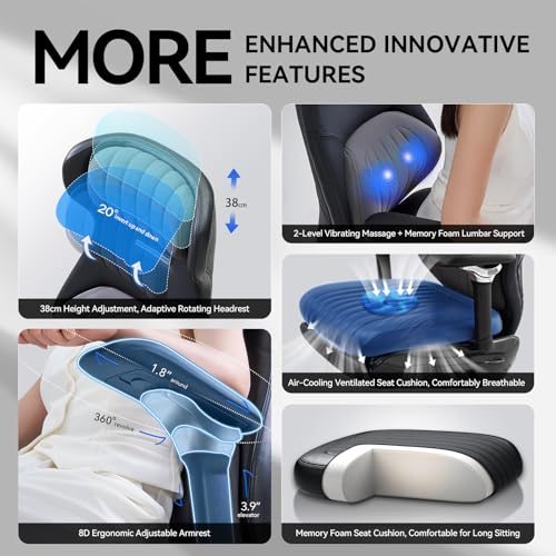 Advanced Ventilated Seat Design and Low Back Vibration Massage: The big and tall gaming chair is good for both home and office use, offering exceptional comfort for long hours. Its ergonomic design provides full support for your spine, head, neck, lumbar region, and feet, promoting proper posture and reducing strain. The ventilated seat ensures optimal breathability, keeping you cool during extended sitting sessions. Additionally, the built-in low back massage and vibration function help relieve muscle tension, improve circulation, and enhance relaxation, making it the nice chair for maintaining comfort and focus throughout your workday