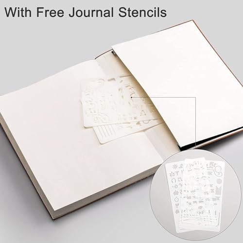 B5 Large Size: Our softcover dotted notebook comes with 1 pack of journal stencils, It is B5 size (7.48″ x 10.15″) and contains 96 sheets/192 ruled pages, providing ample writing space