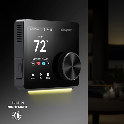 Energizer Smart Thermostat, Programable Wi-Fi Thermostat, 5GHz & 2.4GHz, Compatible with Alexa and Google, App Control, 3.5” inch Color Touch Screen, Easy Installation, 7 Day Scheduling, Night Light