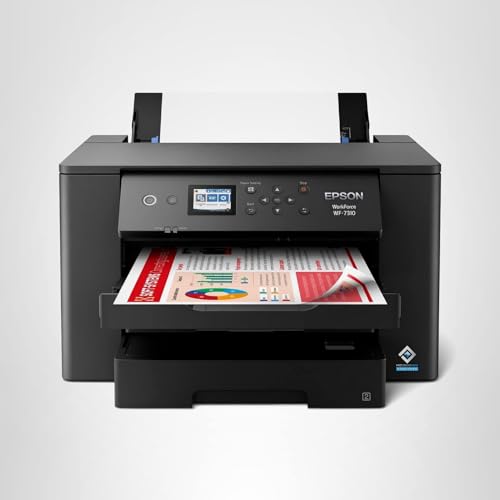 Enhance office productivity with the high-powered WorkForce Pro WF-7310. A high-performance, wide-format printing solution, the WorkForce Pro WF-7310 delivers print-shop-quality graphics up to 13″ x 19″ and borderless up to 11″ x 17″. Offering fast print speeds, this efficient printer streamlines workflow at an astounding 25 black/12 color ISO ppm (†). Designed with durability and reliability in mind, the WorkForce Pro WF-7310 features PrecisionCore Heat-Free Technology and DURABrite Ultra instant-dry pigment inks to quickly and consistently deliver crisp, vibrant prints with sharp text and vivid colors. The perfect choice for fast, efficient printing, the WorkForce Pro WF-7310 easily tackles high-volume print jobs with two 250-sheet trays, a rear feed and Wi-Fi 5 compatibility (1). Plus, with the Epson Smart Panel App (2), you can conveniently manage printer workflow from your smart device (3). *This product uses only genuine Epson-brand cartridges. Other brands of ink cartridges and ink supplies are not compatible and, even if described as compatible, may not function properly. † Black and color print speeds are measured in accordance with ISO/IEC 24734. Actual print times will vary based on factors including system configuration, software, and page complexity. 1. Wi-Fi CERTIFIED; level of performance subject to the range of the router being used. Wi-Fi Direct may require printer software. 2. Requires Epson Smart Panel App download. Data usage fees may apply. 3. Most features require an Internet connection to the printer, as well as an Internet- and/or email-enabled device. 4. Based on comparing manufacturers’ reported TEC values of the best-selling, similarly featured A3 color laser printers priced about $999 (USD) or less with print speeds of 40 ppm or less as of September 2020 5. SmartWay is an innovative partnership of the U.S. Environmental Protection Agency that reduces greenhouse gases and other air pollutants and improves fuel efficiency.
