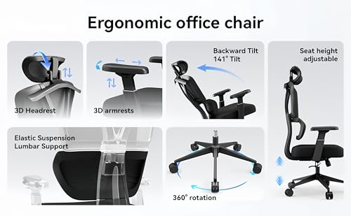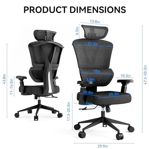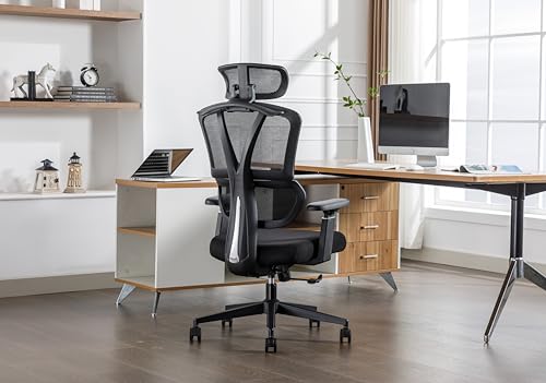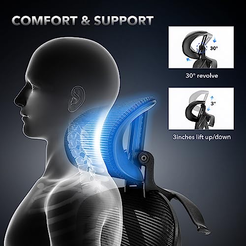 【Back & Neck Support】:This high back ergonomic office chair with lumbar support aligns your spine naturally. The breathable mesh back promotes airflow, and the adjustable headrest (30° tilt, 3-inch vertical) supports your neck, cervical spine, and shoulders. Ideal for home office desk use, computer work, or gaming setups.