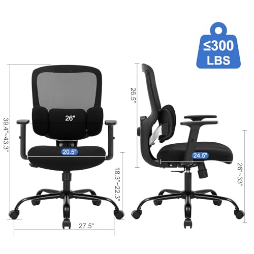Specification: Ergonomic Office Chair, Ergonomic Desk Chair with Adjustable Height, Lumbar Support, High Back Mesh Support with Adjustable Armrests, Task Chairs for Home Office Computer-350LBS