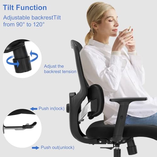 Ergonomic Office Chair, Ergonomic Desk Chair with Adjustable Height, Lumbar Support, High Back Mesh Support with Adjustable Armrests, Task Chairs for Home Office Computer-350LBS
