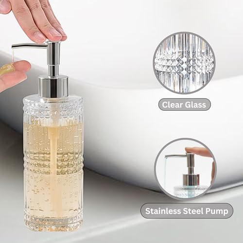 High Quality Materials: Featuring a premium ABS pump that dispenses smoothly without leaks or splashes, this set keeps your bathroom or sink area clean. Sturdy glass material is clear and glossy, making the appearance of the product more beautiful and in line with modern home decoration style.