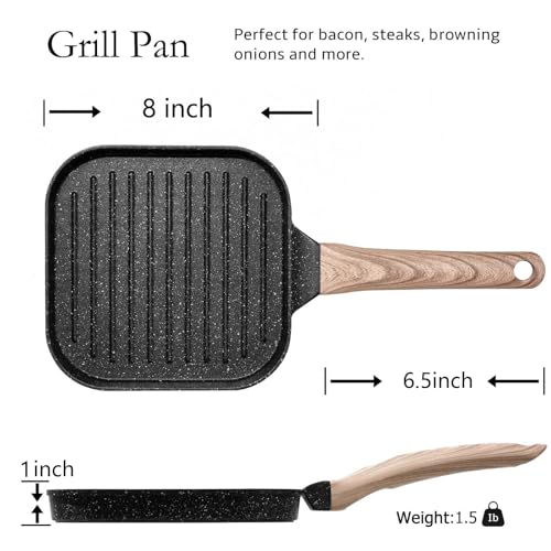 Specification: ESLITE LIFE 7 Inch Nonstick Small Grill Pan for Indoor Cooking, Versatile Induction Square Grilling Skillet Steak Pan for Stove Tops, PTFE & PFOA Free, Black