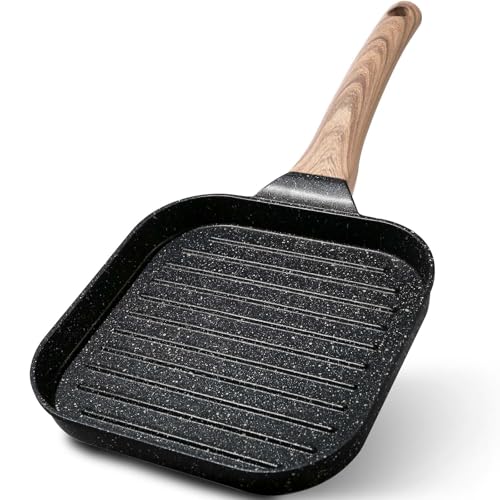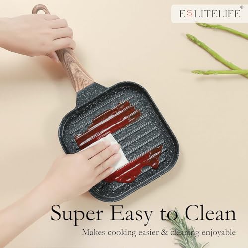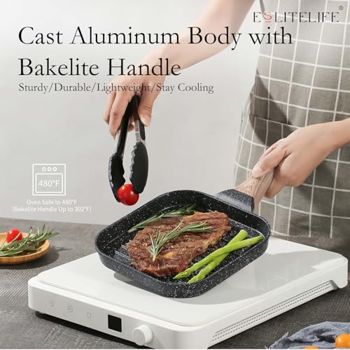 ESLITE LIFE 7 Inch Nonstick Small Grill Pan for Indoor Cooking, Versatile Induction Square Grilling Skillet Steak Pan for Stove Tops, PTFE & PFOA Free, Black