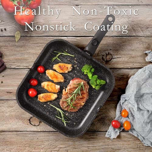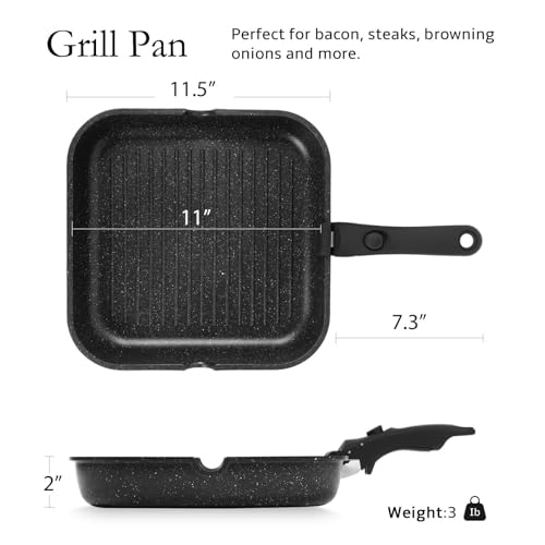 Specification: ESLITE LIFE Nonstick Grill Pan with Detachable Handle, Versatile Square Skillet for Indoor Cooking & Outdoor Grilling, PFOA Free, Black-11 Inch