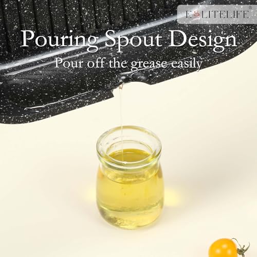 Versatile and Easy to Use: Ideal for a variety of dishes including bacon, steaks, and grilled cheese. The parallel ridges provide distinct grill marks and channel grease to the sides. The double pour spouts facilitate oil draining. The heat-resistant detachable bakelite handle not only stays cool for a comfortable grip but also saves valuable storage space and simplifies the cleaning process when removed.