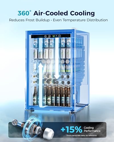 【Compact Size and Huge Capacity】This compact beverage refrigerator sports a roomy interior could effortlessly holds up to 145 cans of your favorite beverages or 37 bottles of white or red wine, making it an ideal mini fridge for homes, offices or for any special event