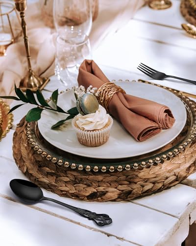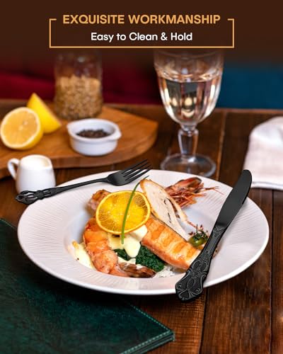Excellent Quality — These black flatware sets are made of durable stainless steel material and high-quality craftsmanship ensure durability and longevity. Multiple times of fine polishing gives the cutlery set not only a bright mirror effect but also smooth edges. Its exquisite appearance and shiny surface are sure to impress your guests. Redefine Premium of silverware and enjoy accessible luxury.