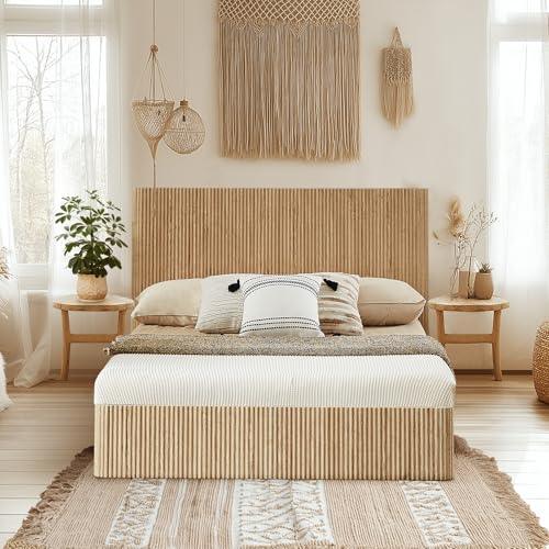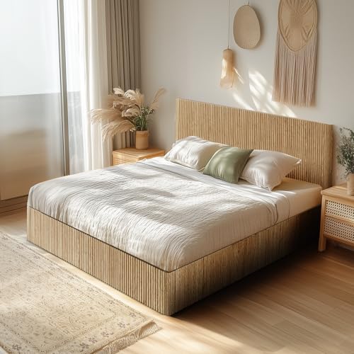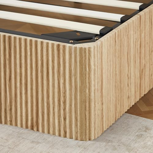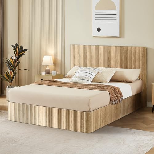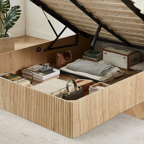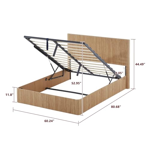 Specification: Evermagin Natural Queen Lift Up Storage Bed Frame, Mid Century Modern Fluted Bed Frame, Wood Hydraulic Queen Size Bedframe with Headboard