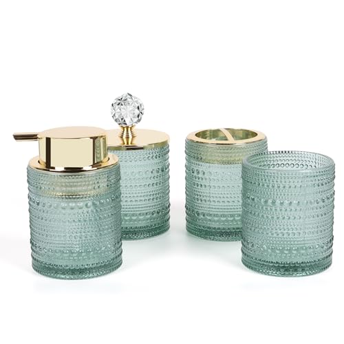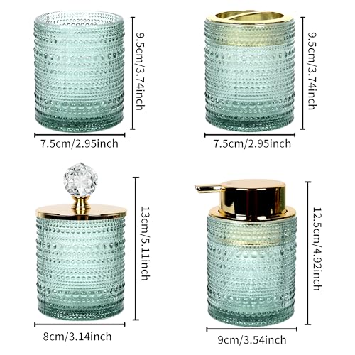 FEILANDUO Bathroom Accessories Set,4Pcs Glass Bathroom Accessories,Vanity Bathroom Decor, Soap Dispenser, Toothbrush Holder Set, Apothecary Jar, Gift for Home Apartment (Green)