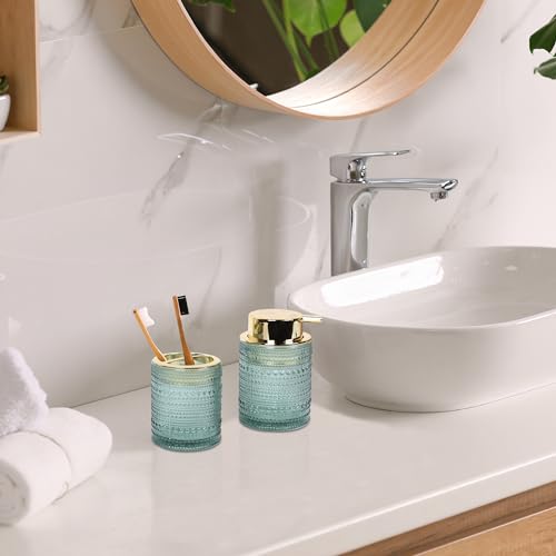 Premium Material & Elegant Designs: Bathroom soap set is made of thick and durable glass, paired with gold electroplating pump, toothbrush holder features a stainless steel top, sophisticated and urbane, dimensional facets and a beautifully weighted feel, adds a touch of serenity and refinement to any bathroom.
