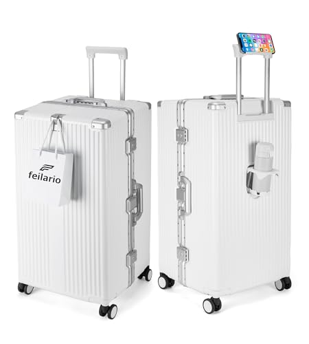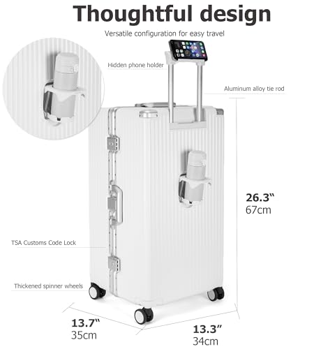 feilario 26in Super Large Captain Aluminum Frame Hardside Spinner Wheels Luggage, Zipperless Checked Suitcase with Cup Holder/Phone Holder