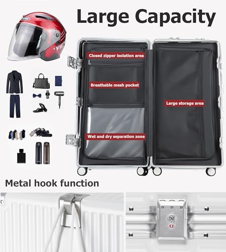 Sturdy Aluminum Frame Corner Protection: The luggage large suitcase is fortified with four sturdy aluminum corner frames, providing an extra layer of protection for your belongings. These corner protectors absorb impact and safeguard your luggage from rough handling during transit, ensuring that your valuables remain intact.