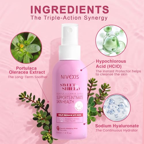Specification: Feminine Intimate Skin Spray, Vaginal Odor Control & Itch Relief, pH Balanced Hygiene Cleanser, Soothes Irritated for Vaginal, Hypoallergenic, Fragrance-Free Hypochlorous Acid Formula, 4 fl oz