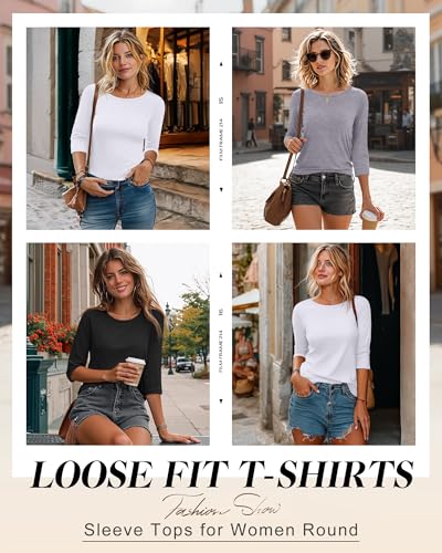 Ficerd 3 Pack 3/4 Sleeve Tops for Women Round Neck Dressy Basics Tees Casual Trendy Loose Fit T Shirts