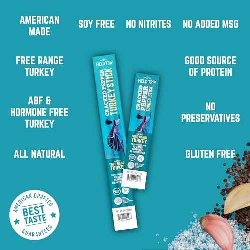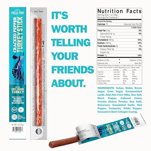 Specification: Field Trip Cracked Pepper Turkey Jerky Snack Sticks, Keto, Paleo, Gluten Free, Allergy Friendly Snack, High Protein, 70 Calorie Snack, 1oz, 24 Pack