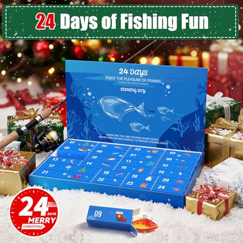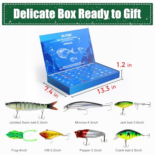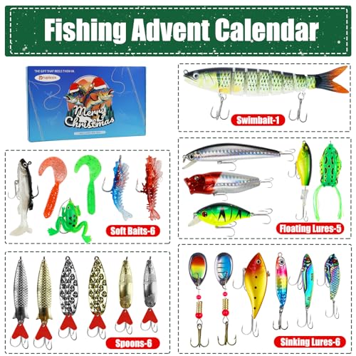 Specification: Fishing Lure Advent Calendar 2025 with 24 Individually Wrapped Baits, Christmas Countdown Gift for Men Dad Teen Anglers