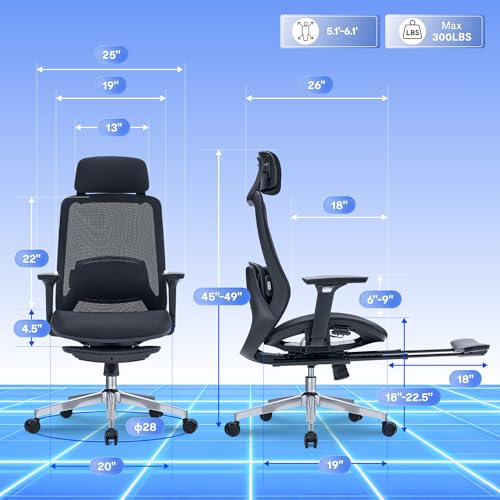 Specification: FLEXISPOT MasterEase Massage Office Chair with Footrest, High Back Ergonomic Desk Chair with Adjustable Headrest, 3D Armrests, 2D Lumbar Heated Massage, 4-Position Recline, Mesh Seat, Black