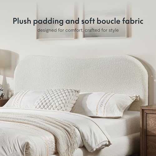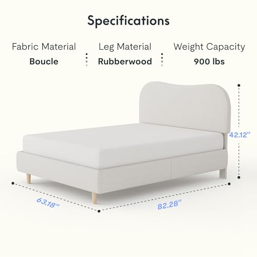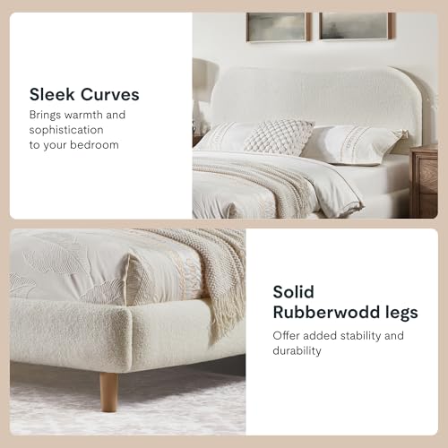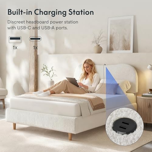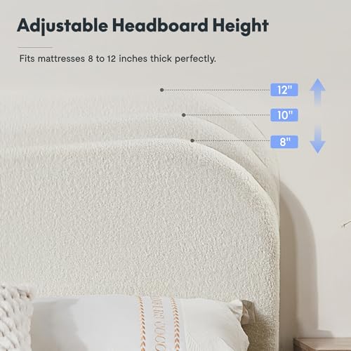 Specification: FLEXISPOT Queen Size Boucle Bed Frame, Upholstered Cloud Platform Bed with Adjustable Headboard, Plush Padding, Solid Wood Legs, Bonus LED Wall Light, No Box Spring Needed, Easy Assembly, White