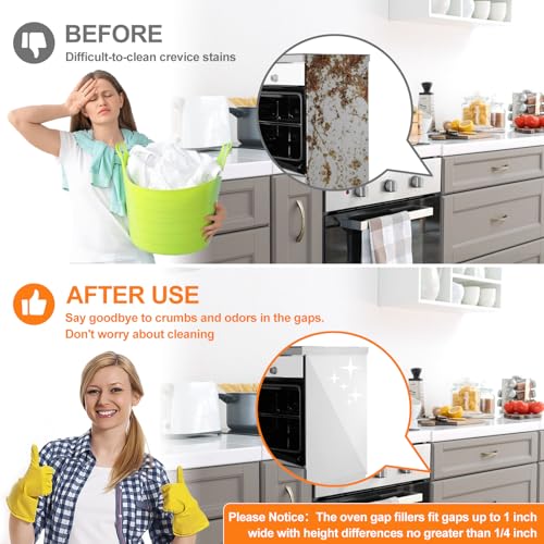 【Stain-Resistant Silicone Surface】Stove Gap Cover has an anti-static function and features an oil-repellent coating that easily wipes clean, even ketchup stains leave no trace. Keep the space between your oven and counter looking spotless