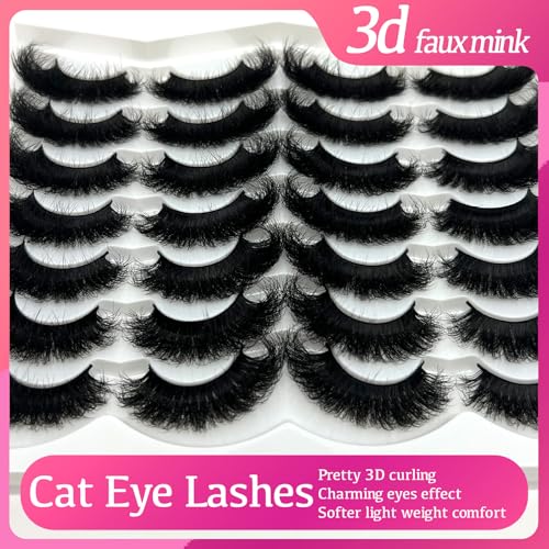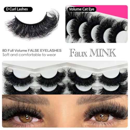 Fluffy Lashes Mink 25 mm Long Dramatic Lashes Strip Cat Eye D Curl Faux Mink Big Eyelashes Volume False Eyelashes Pack