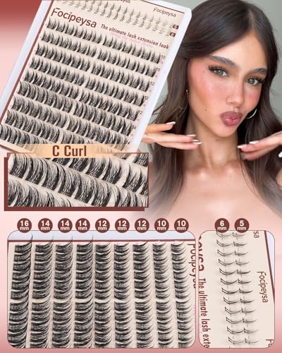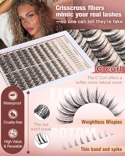 Specification: Focipeysa Wispy Lash Clusters Natural Eyelash Clusters Pestañas Postizas Naturales Spiky Manga Lash Extensions C Curly Individual Lashes 10-16mm with Bottom Lashes Clusters DIY Lash at Home