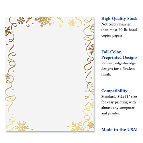 Foil Streamers & Snow Letter Papers – Set of 25, Stationery Papers, 8.5″ x 11″, Computer Paper, 70# Text Paper, Holiday, Christmas, Invitations, Newsletters…