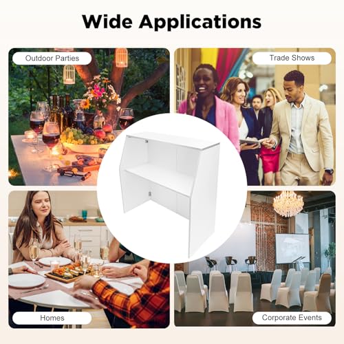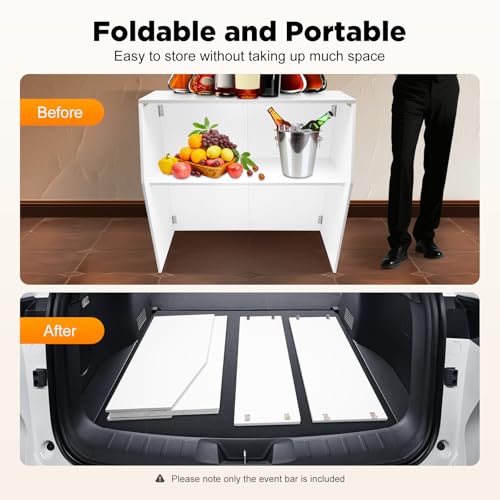 Foldable Design: The bartending table folds for easy portability and compact storage after use. Simply remove the top, unhinge the table, and fold the sides inward.