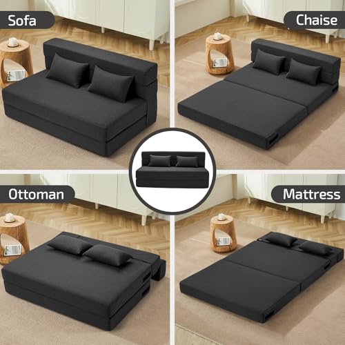 Folding Sofa Bed with Pillows- Convertible Chair Floor Couch & Sleeping Mattress, Foldable Memory Foam Sleeper for Living Room/Dorm/Guest Room/Home Office/Apartment/Loft, Full, Dark Gray