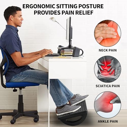 Foot Rest for Under Desk at Work – Ergonomic Foot Stools for Under Office Desk – Rocking Footrest with Roller Massager – Leg Rest for Chair, Computer Gaming – Promote Leg Circulation