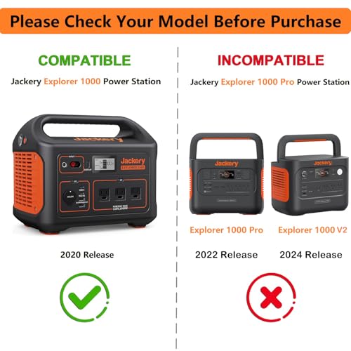 【Non-Compatible】Do Not Fit Jackery Pro or Plus or V2 series like Jackery Explorer 1000 v2 (2024 Release) / Jackery Explorer 1000 Pro (2022 Release) / Explorer 1500 /E1500 Pro (2023 Release) / Explorer 2000 PRO; That the Jackery Portable Power Station available in a number of different Models Number,Please make sure your model or pn match this listing.
