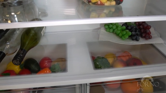 𝐅𝐑𝐄𝐒𝐇 𝐅𝐎𝐎𝐃 𝐙𝐎𝐍𝐄: The 36” Forno french door refrigerator offers a frost-free, free-standing design with a multi-air flow cooling system. With ample space to store your fresh food with 3 adjustable glass shelves, Two-gallon bins, and 2 Durable Drawers. The Fridge capacity is 12.12 cubic feet. Easy access drawers when doors are open at 90°