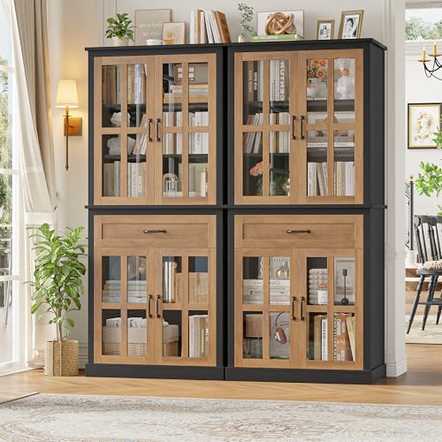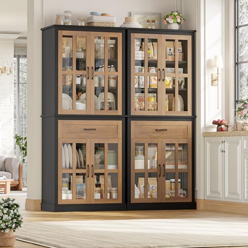 【Pantry Cabinet with Amazing Storage】With 5 storage cabinets and a deep drawer, this pantry storage cabinet provides plenty of storage space to keep your household items organized. The glass display cabinet allows you to see the kitchen appliances inside more clearly. Your home can look fabulous without compromising on the ever-important storage. This white pantry cabinet can be used in the kitchen, living room, dining room, entryway, and other corners, or as a file cabinet, display cabinet, or bookcase in your home office.