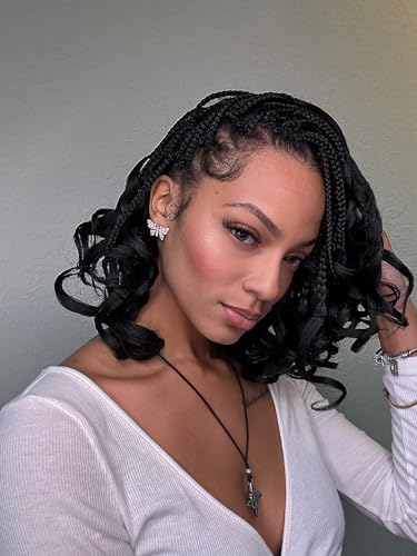 Specification: French Curl Braiding Hair 10 Inch Curly Braiding Hair Pre Stretched 8 Packs Short Black French Curl Crochet Braids for Box Braids with Curly Ends for Black Women (1B)