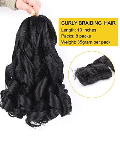 French Curl Braiding Hair 10 Inch Curly Braiding Hair Pre Stretched 8 Packs Short Black French Curl Crochet Braids for Box Braids with Curly Ends for Black Women (1B)