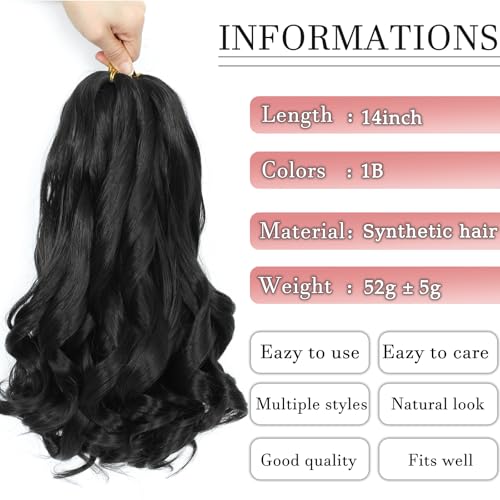 Specification: French Curl Braiding Hair 14 Inch Curly Braiding Hair 8 Packs Pre Stretched Bouncy Loose Wave French Curls Crochet Braids for Black Women (1B, 14 inch)