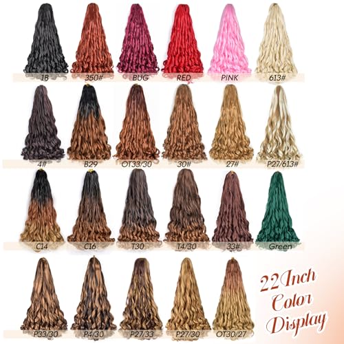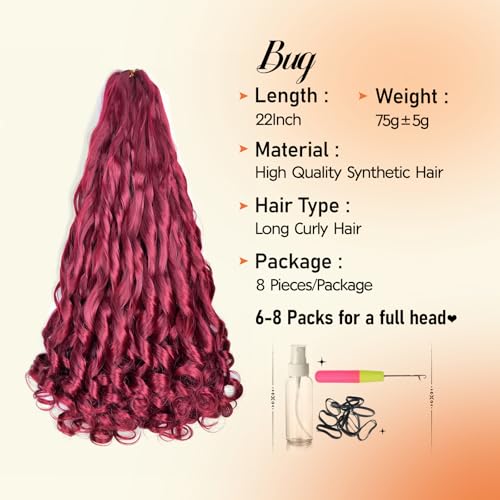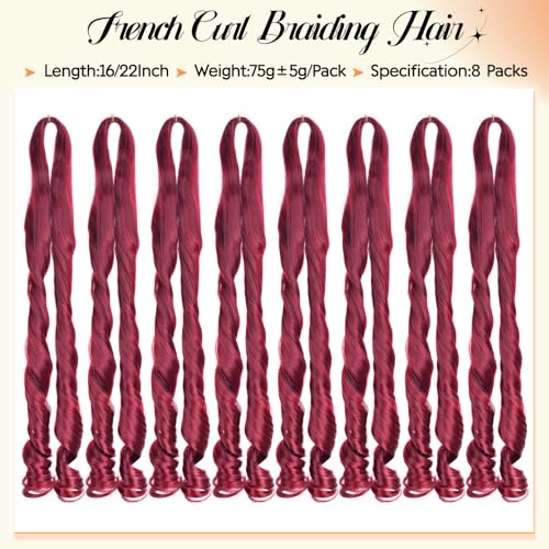 Specification: French Curl Braiding Hair 22 Inch 8 Packs Burgundy Curly Braiding Hair Pre Stretched Bouncy Crochet Hair 75g/Pack Loose Wavy Synthetic Hair Extensions for Black Women(22Inch,8 Packs,Burgundy)