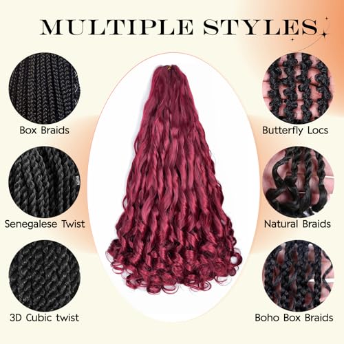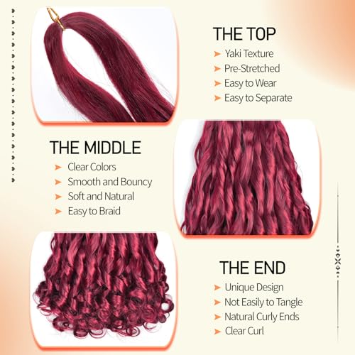 French Curl Braiding Hair 22 Inch 8 Packs Burgundy Curly Braiding Hair Pre Stretched Bouncy Crochet Hair 75g/Pack Loose Wavy Synthetic Hair Extensions for Black Women(22Inch,8 Packs,Burgundy)