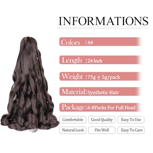 Specification: French Curly Braiding Hair,#4 Brown Synthetic Bouncy Braiding Hair 75g/Pack Crochet Hair Extensions 24Inch 8Pack French Curl Braiding Hair Extensions